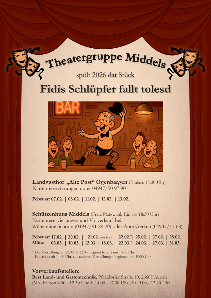 Veranstaltungsorte: Landgasthof „Alte Post“ Ogenbargen und Schützenhuus Middels.